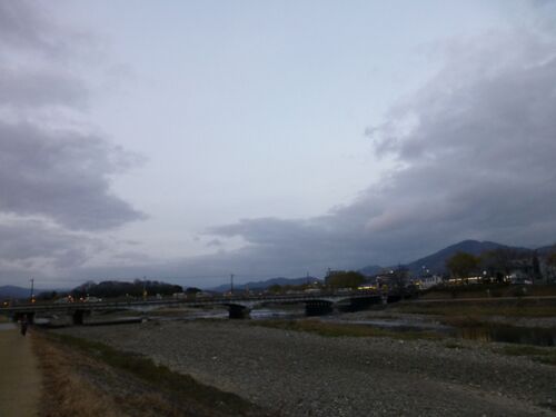 12月16日(月) 寒々とした夕方、けれど昨日は全く風がありませんでした。 風がまったくないので、水面はまるで鏡のよう。 ふと、空を見上げると、まるで白いチョークで落書きしたように 2本の線が引かれてありました。 落書きの間をゆうゆうと鳶が飛ん…
