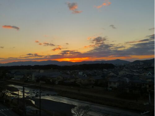 1月13日(火曜日) ショッピングセンターの駐車場にのぼったら、 ちょうど夕陽が沈んだところでした。 オレンジ色の夕焼け。 そして、買い物を終えて、再び外に出たら、 今度は暮れなずむ夕空のなかで、 煌煌と光る金星の隣に寄り添うようにして、水星が…