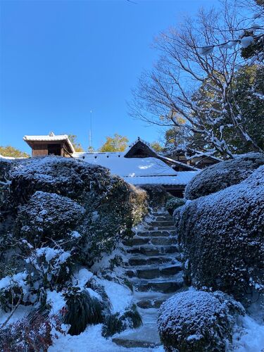 雪散歩の続きです。 圓光寺を出た後、詩仙堂へと向かいました。 入り口には木からの落雪に注意という張り紙が。 確かに上からどさどさと落ちてきそうな雰囲気、^-^; 障子の向こうは雪景色。 お座敷からの雪景色です。 こんもりと雪帽子かぶっています。^-^ …